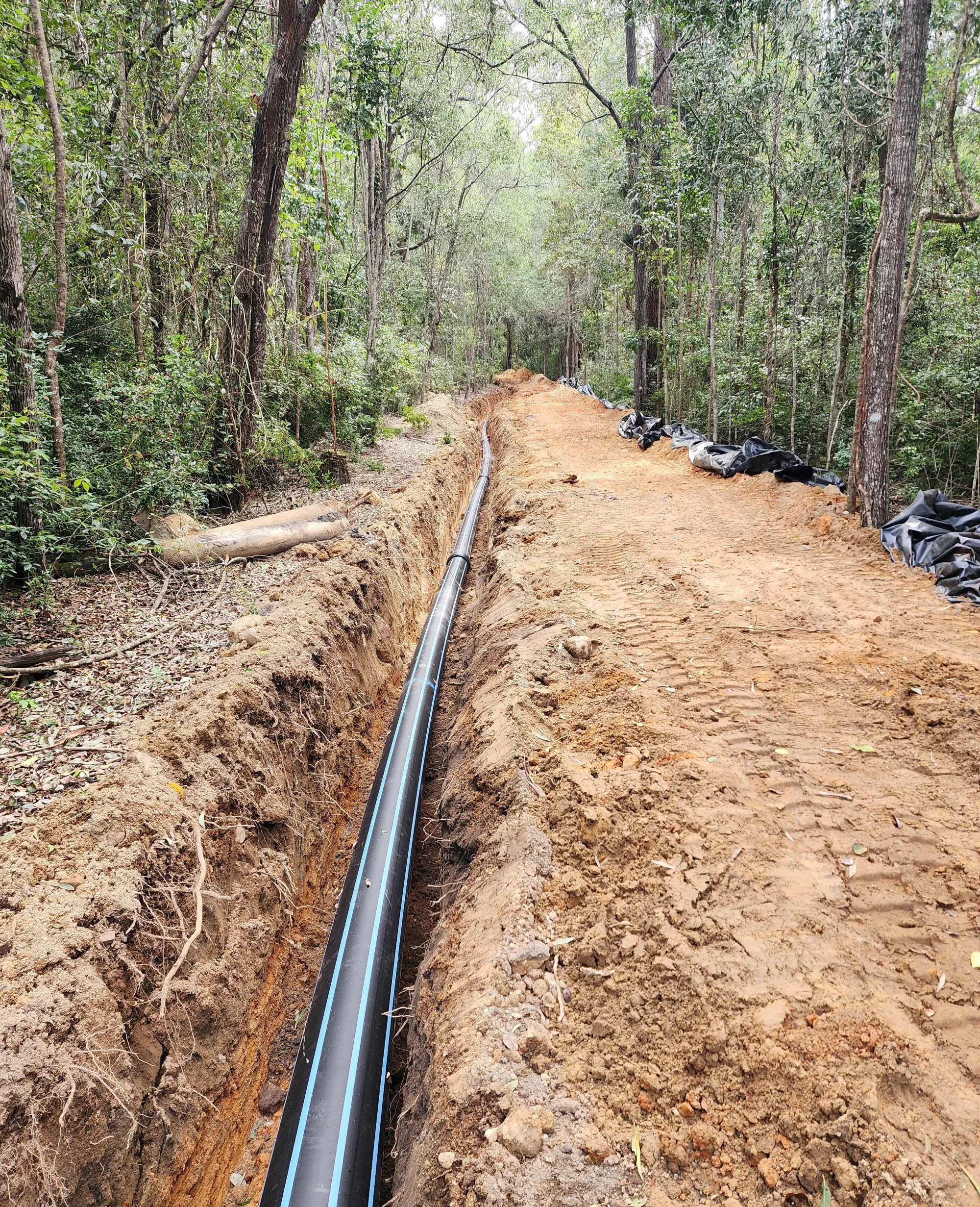 Canungra State Forest — Supply and install 270m of 280mm diameter water main connecting between the existing reservoir and State Forest entrance.